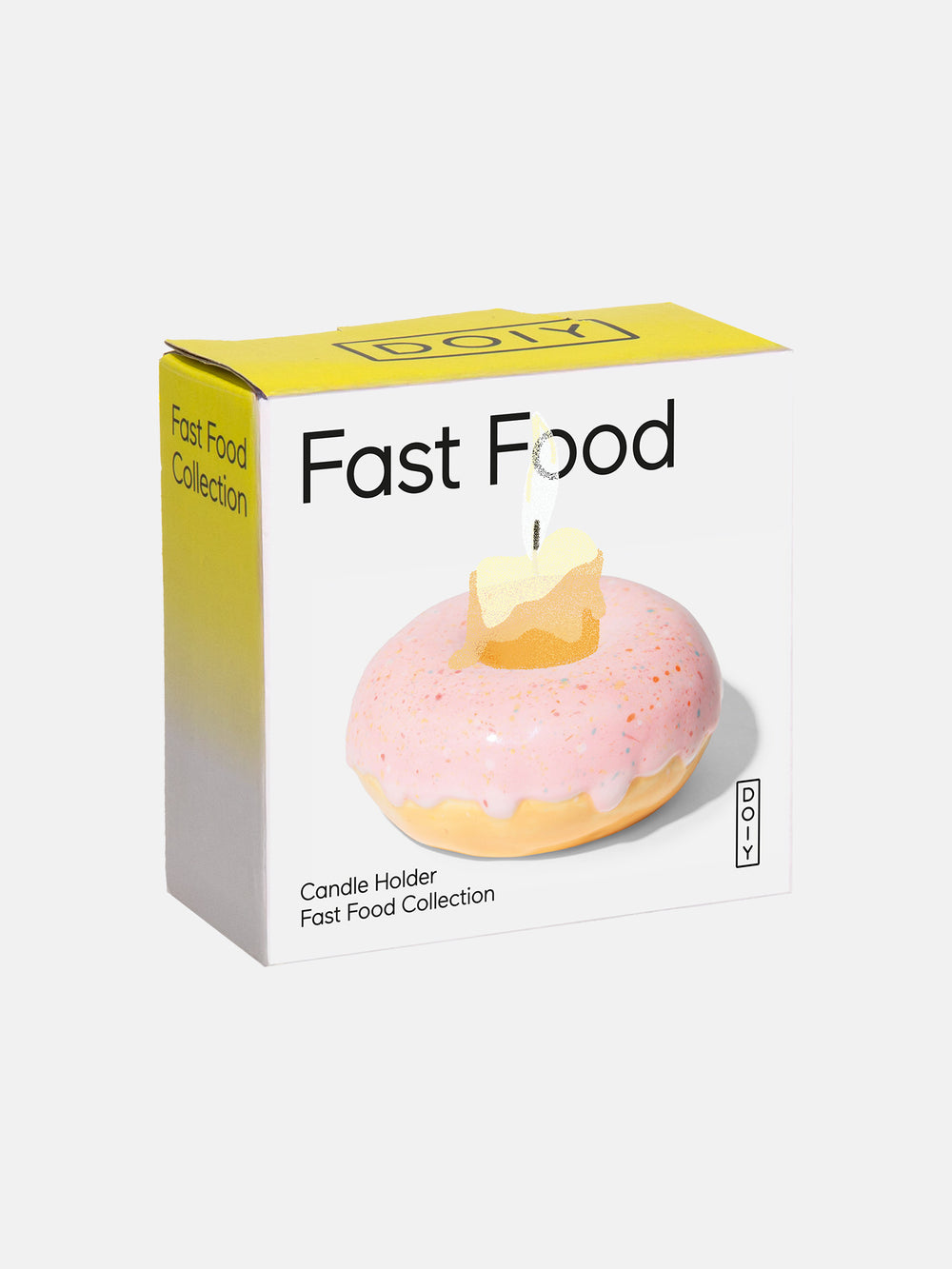 Portavelas de cerámica con forma de dona, diseñado para adoptar la imagen icónica que recuerda a los íconos de los restaurantes y la comida rápida de los años 50, infundiendo su espacio con un regalo retro irrestiblemente delicioso.