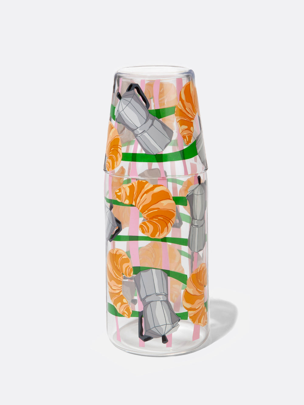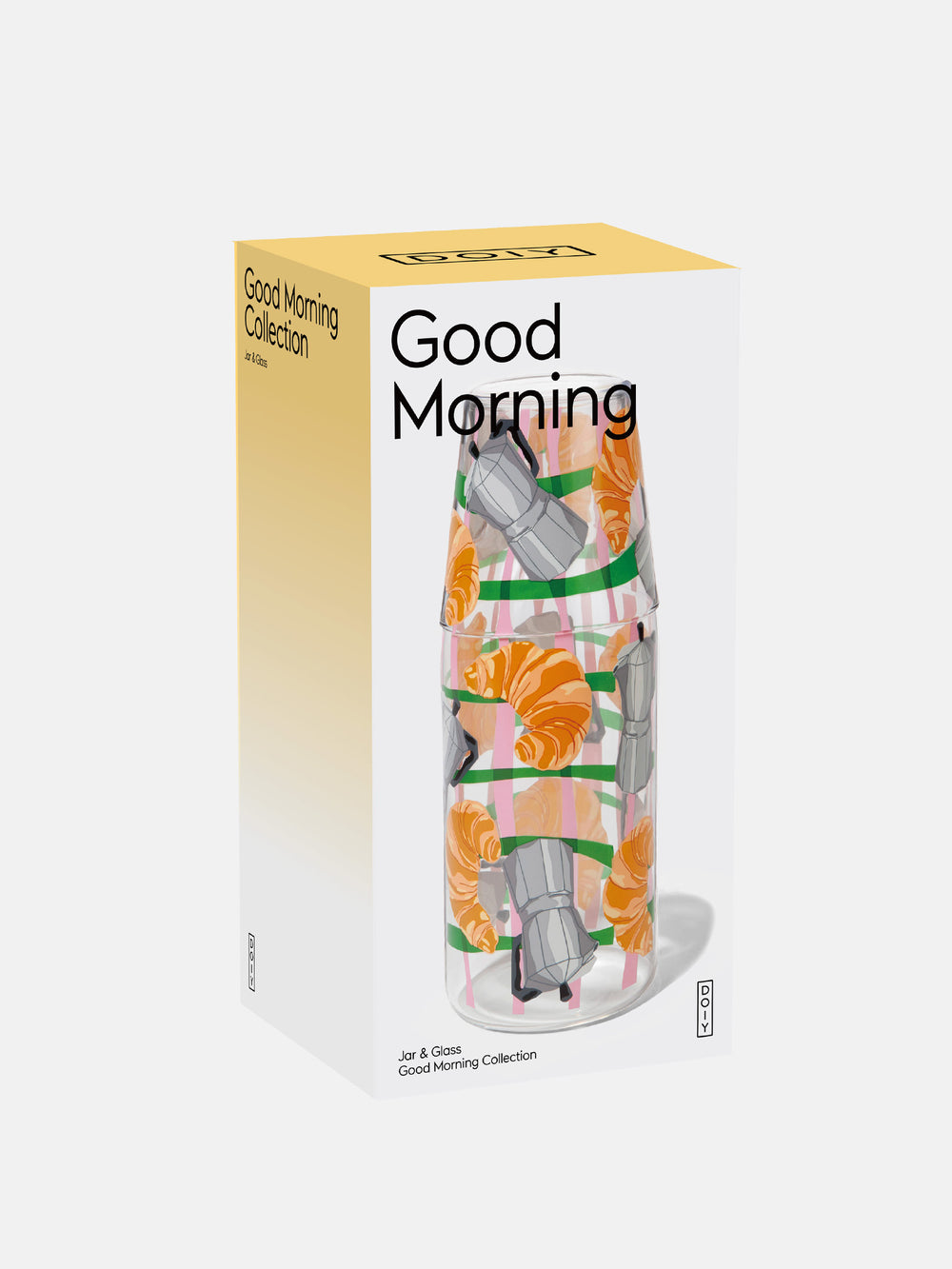 Mejora tus mañanas con la jarra y vaso "Good Morning". Un set inspirado en los clásicos del desayuno, perfecto para disfrutar tus bebidas favoritas.