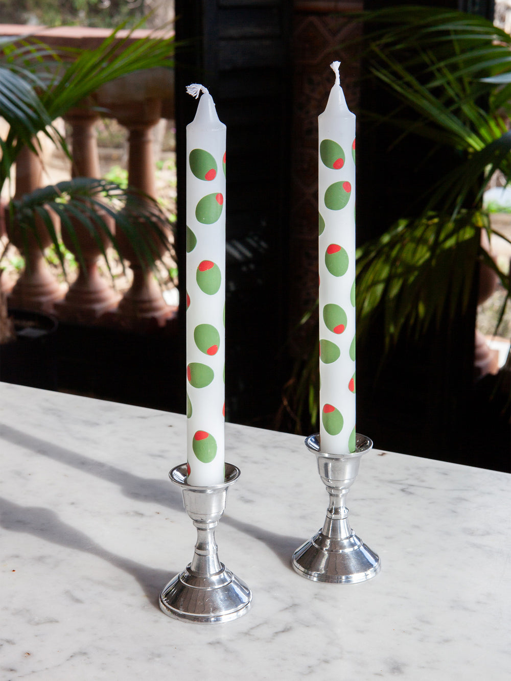Ces bougies taper inspirées des olives sont un clin d'œil audacieux aux couchers de soleil espagnols et aux tables méditerranéennes. Ajoutez-les à votre décoration pour un changement immédiat d'ambiance : joyeux, stylé, inoubliable.